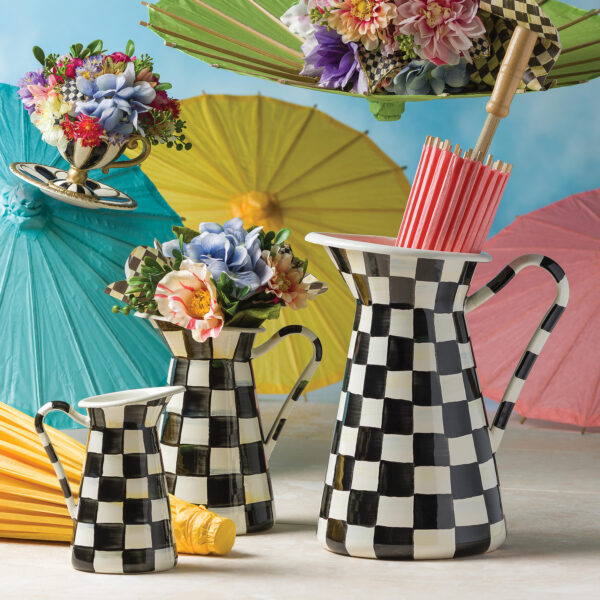 For lemonade, iced tea—or better yet, a blend of both—nothing beats our Large Courtly Check® Enamel Practical Pitcher. The hand-painted black and white checks are woven with jewel tones for a refreshing way to integrate everyone’s favorite pattern into the everyday.